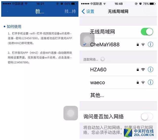 海圳的APP界面也是比較簡(jiǎn)潔,很人性化,相當(dāng)于記錄儀的中控臺(tái)。APP的安裝步驟很簡(jiǎn)單,打開wifi搜索海圳專車專用記錄儀發(fā)出的WiFi信號(hào),連接即可,圖中的“HZA60”就是我們測(cè)試的這臺(tái)海圳產(chǎn)品的wifi名稱。海圳還列出了詳細(xì)的連接方式,可見用心。